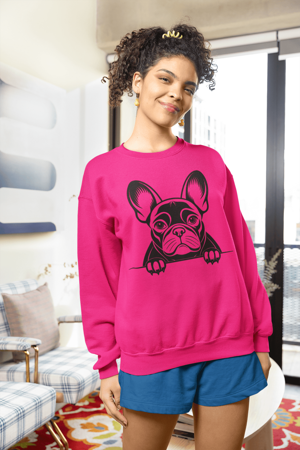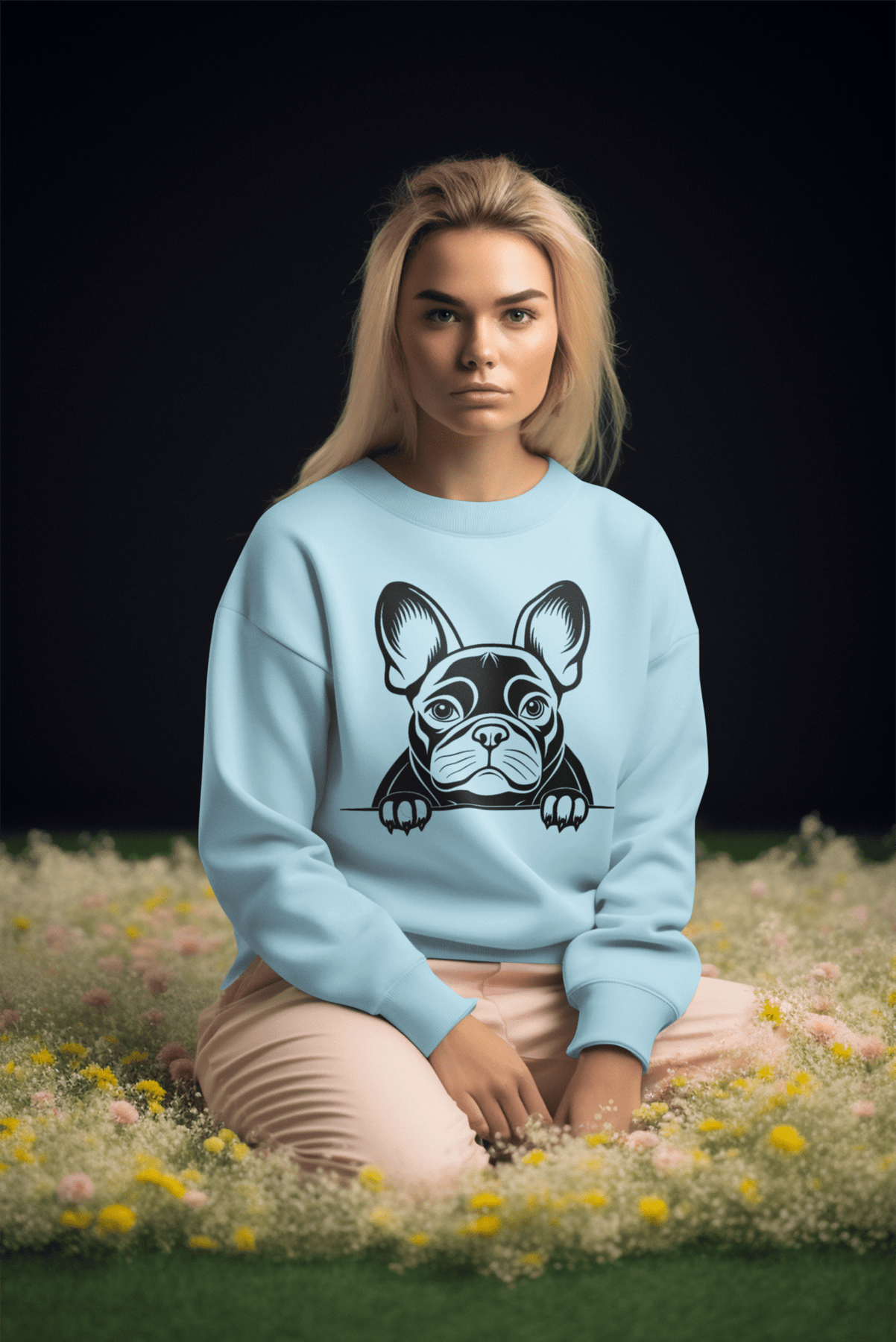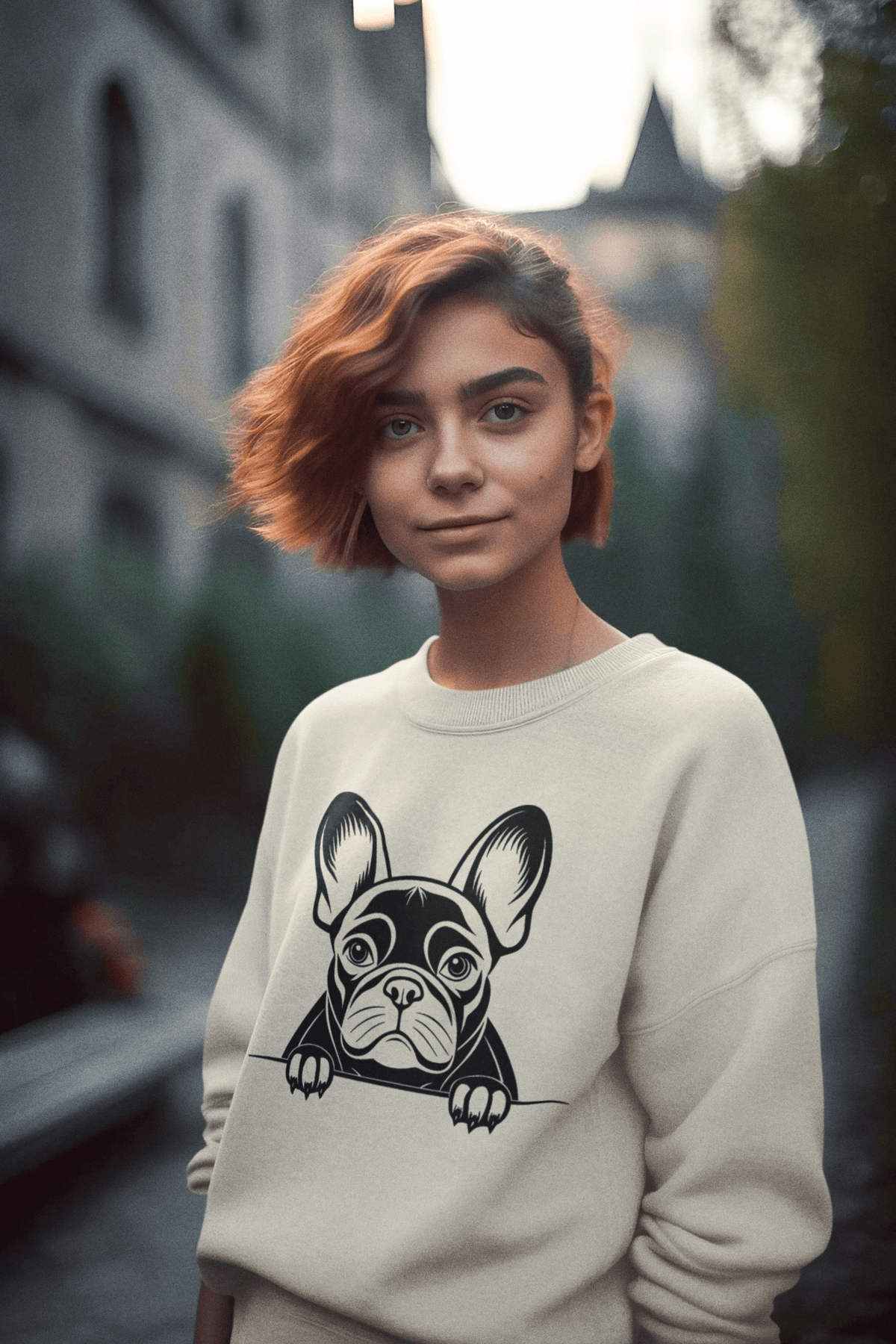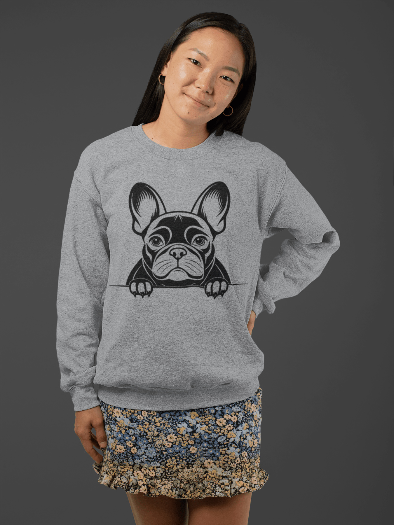 Design: Simple French Bulldog print on front.