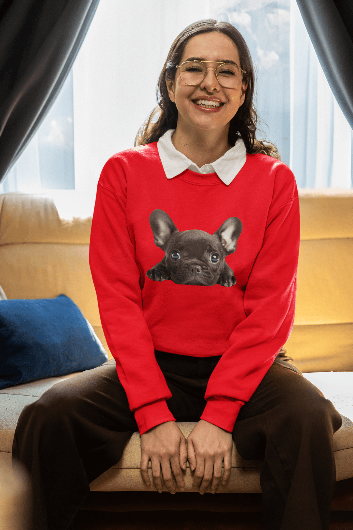 Gildan 18000 Crewneck Sweatshirt – cozy 50/50 cotton-poly blend (8 oz), classic fit, ribbed collar & cuffs that keep their shape. Soft, itch-free with tear-away label. Ethically made with US cotton & eco-safe dyes. Adorned with a cute French Bulldog print!