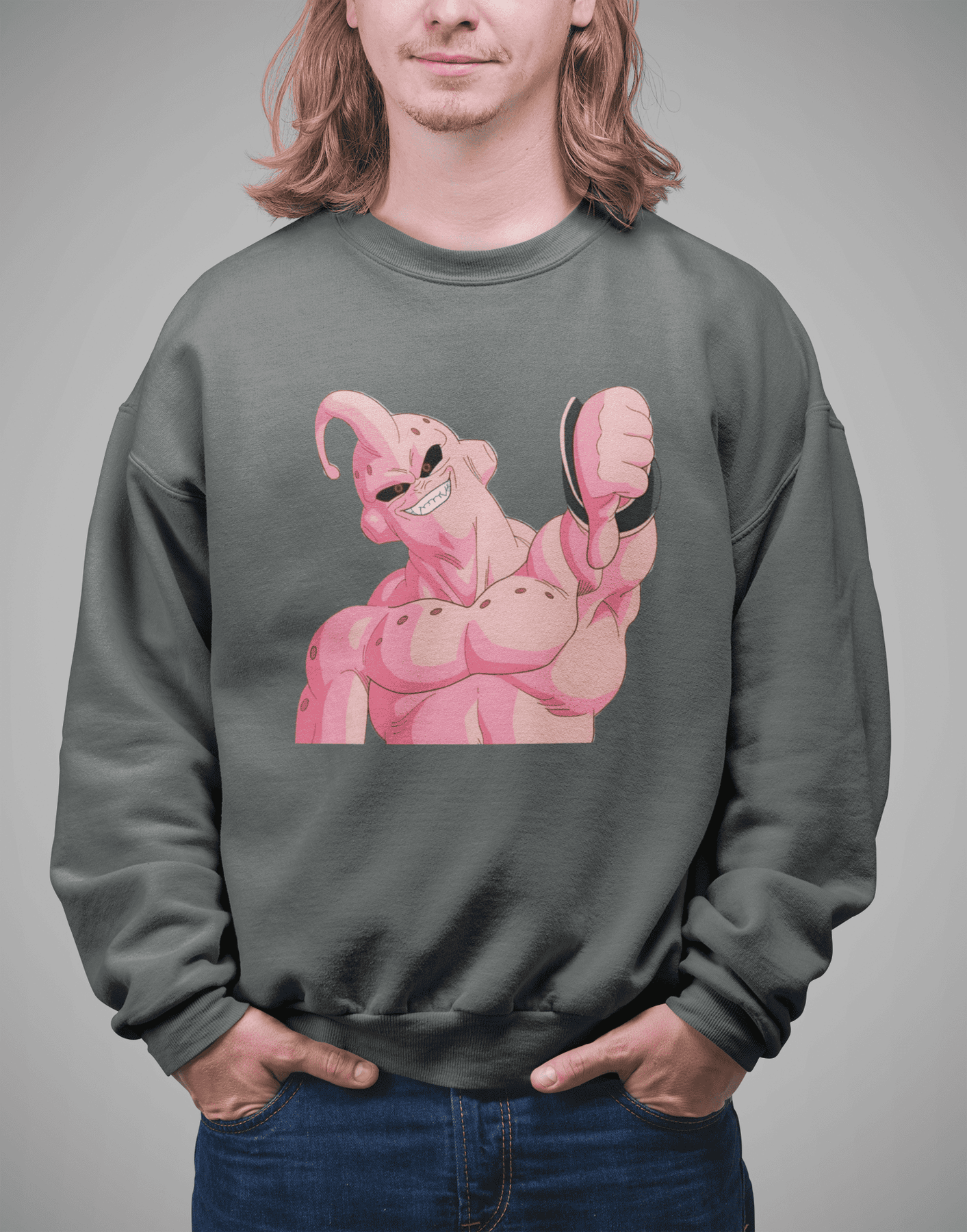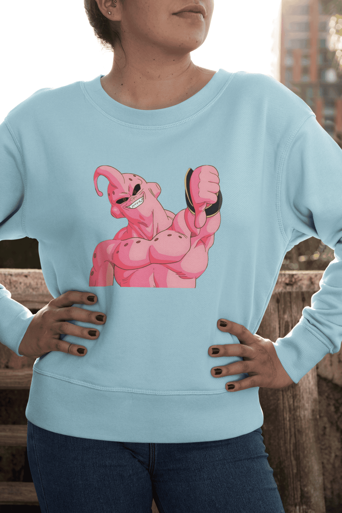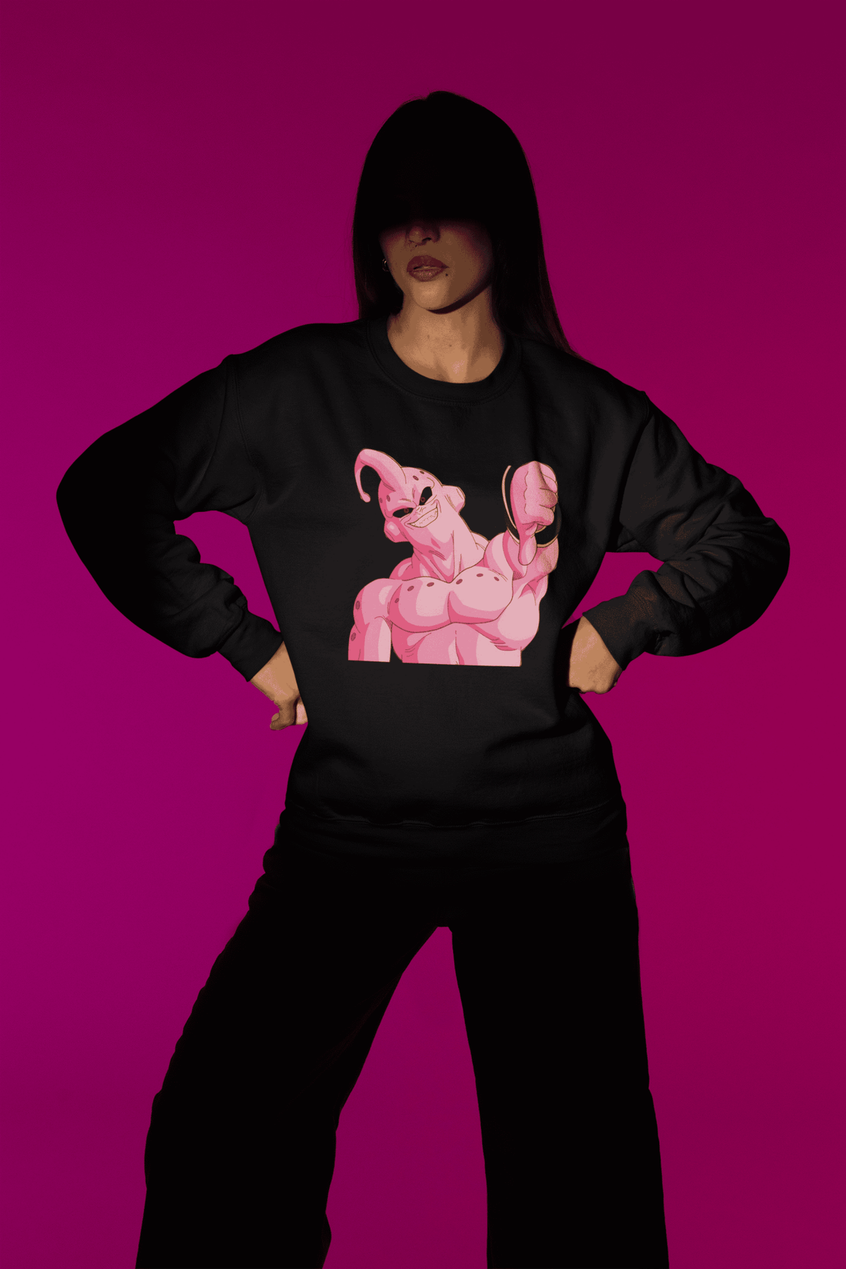 The pink terror himself, flexing like only Majin Buu can. Perfect for every DBZ fan who knows real power!
