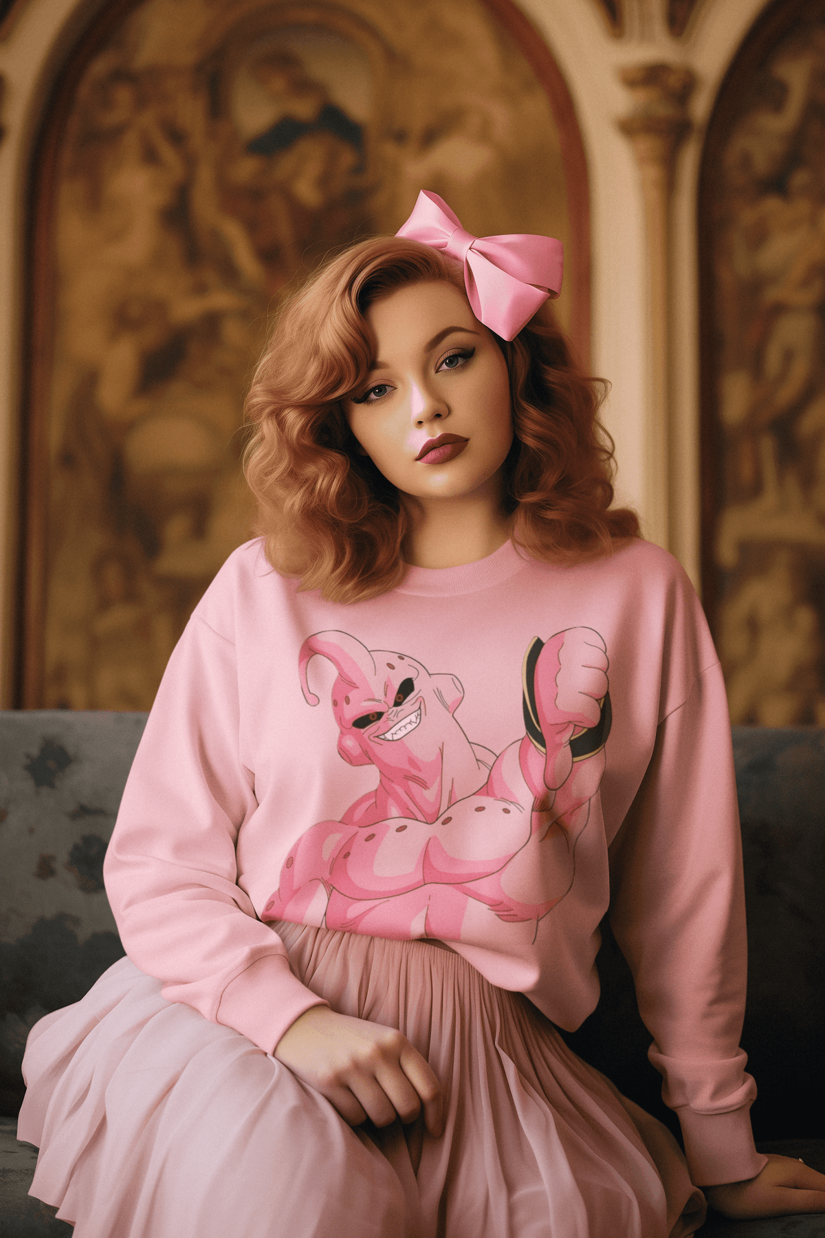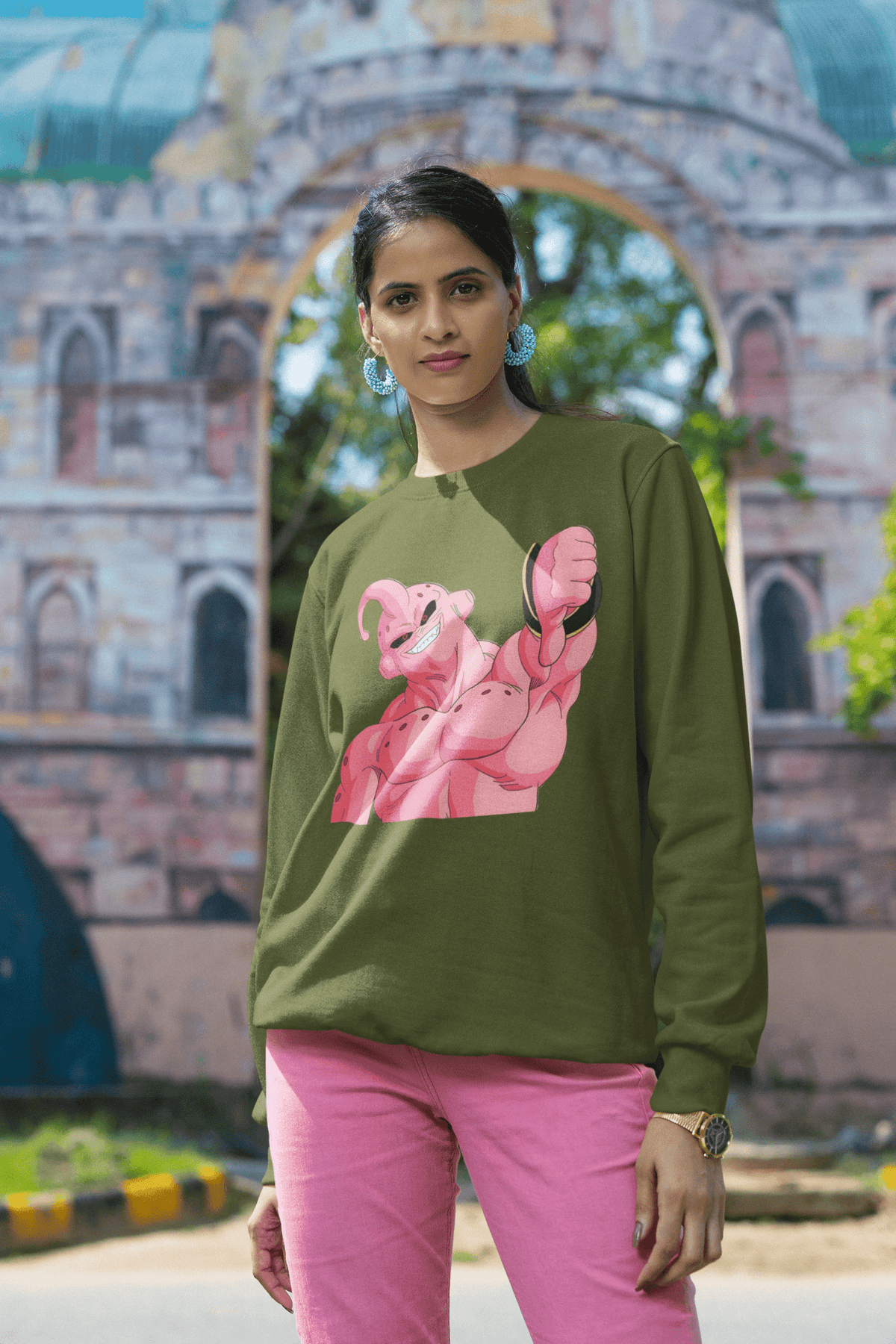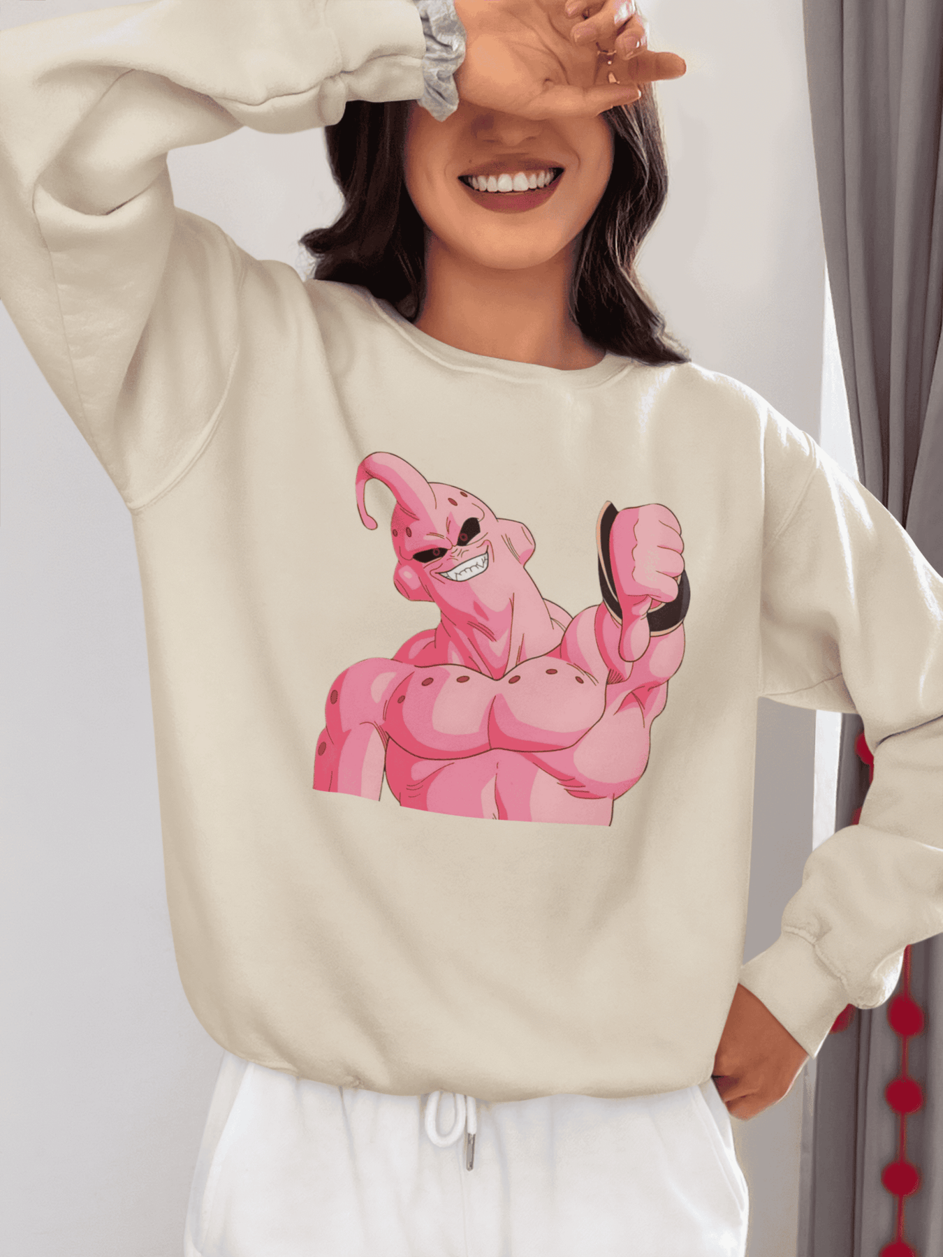 The pink terror himself, flexing like only Majin Buu can. Perfect for every DBZ fan who knows real power!