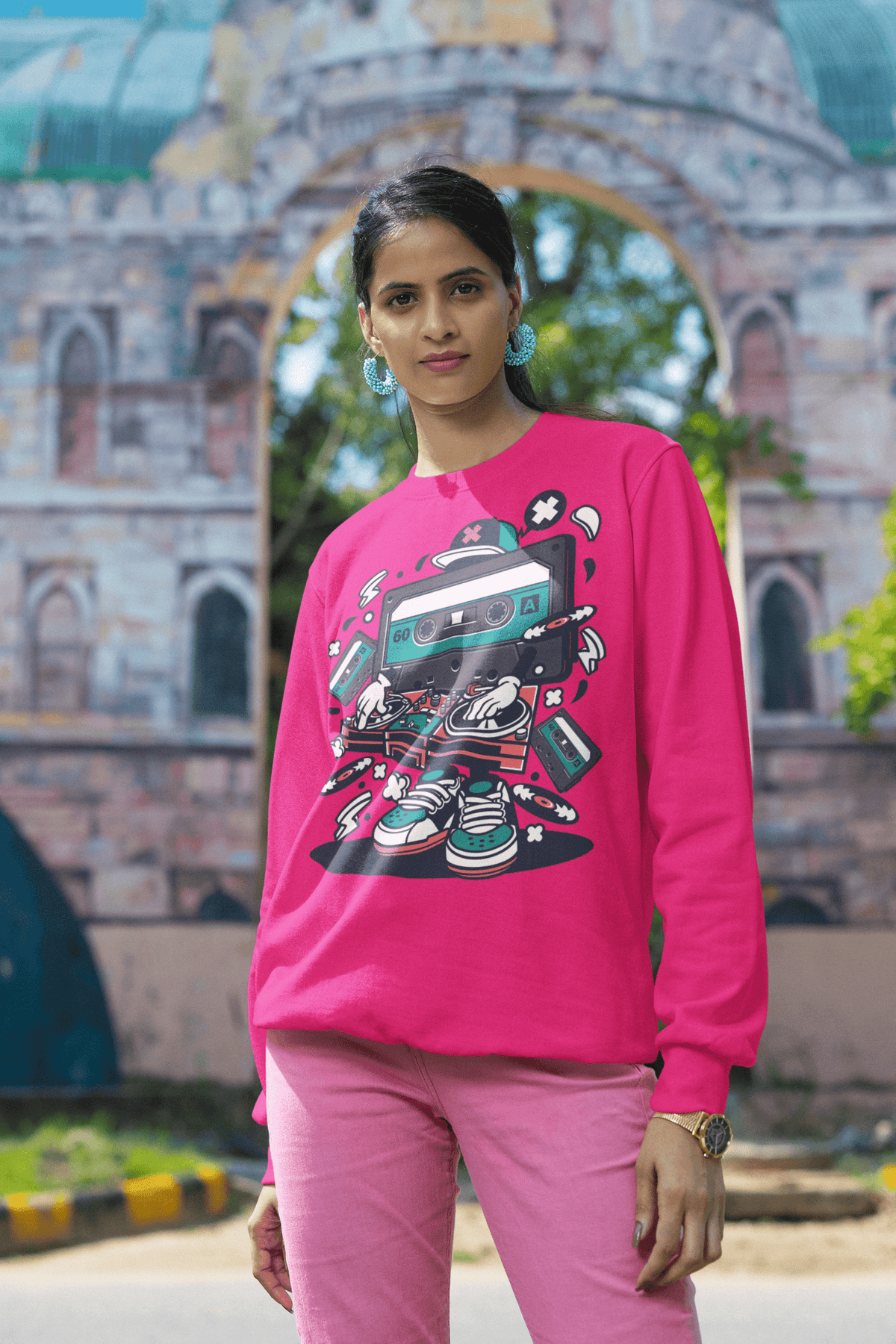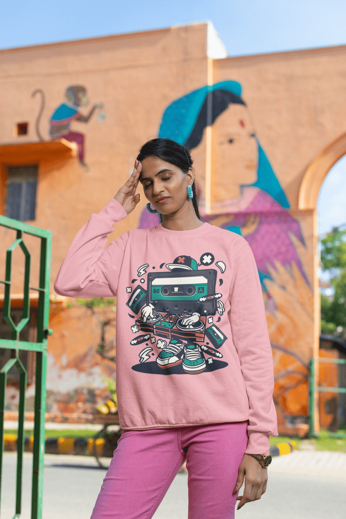 Retro Cassette Tape & Sneakers 90s Sweatshirt | Oversized Unisex - zemaStyle