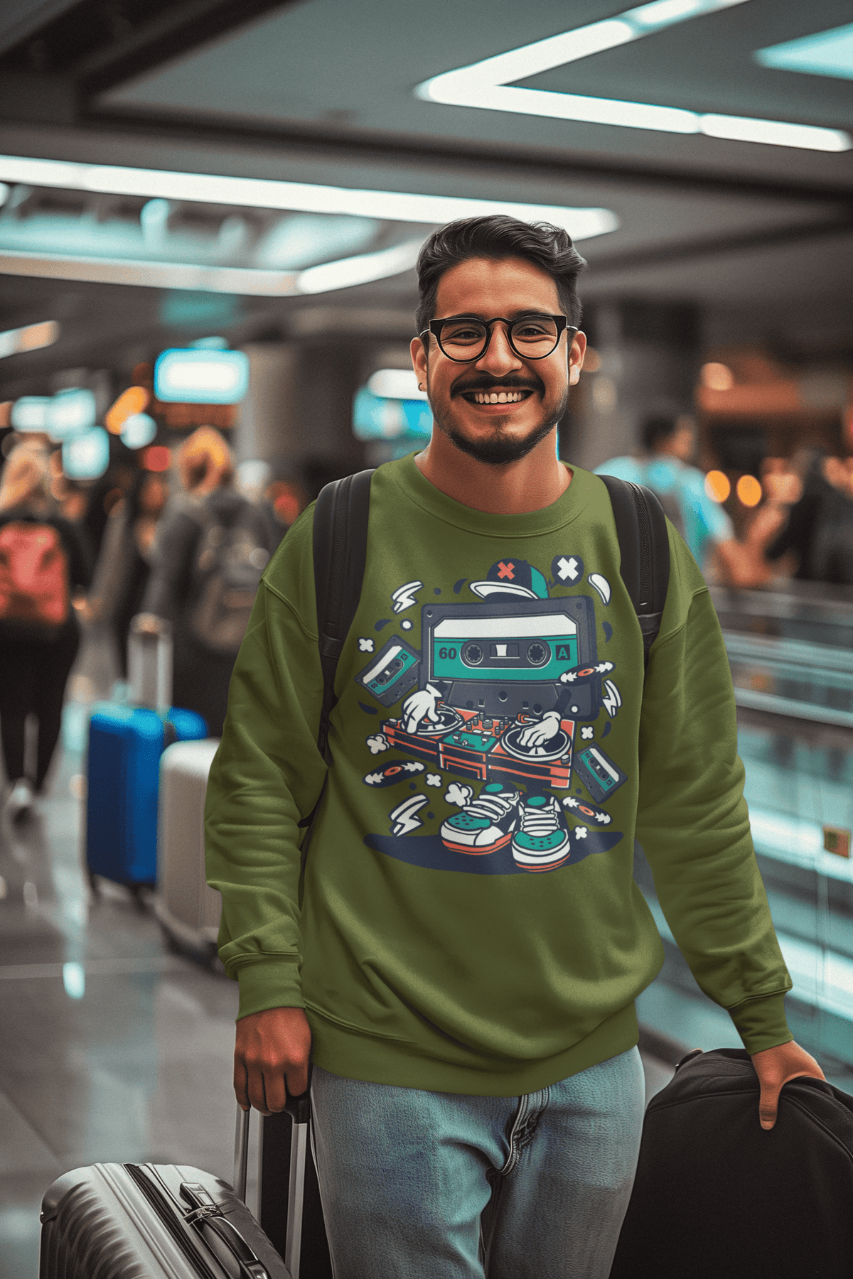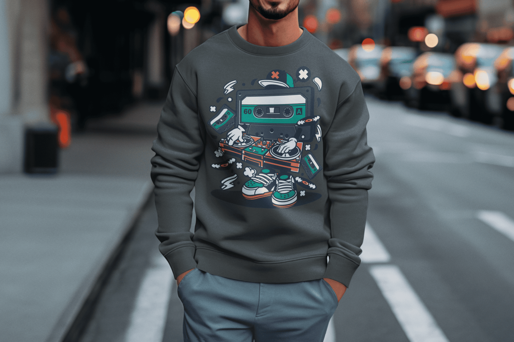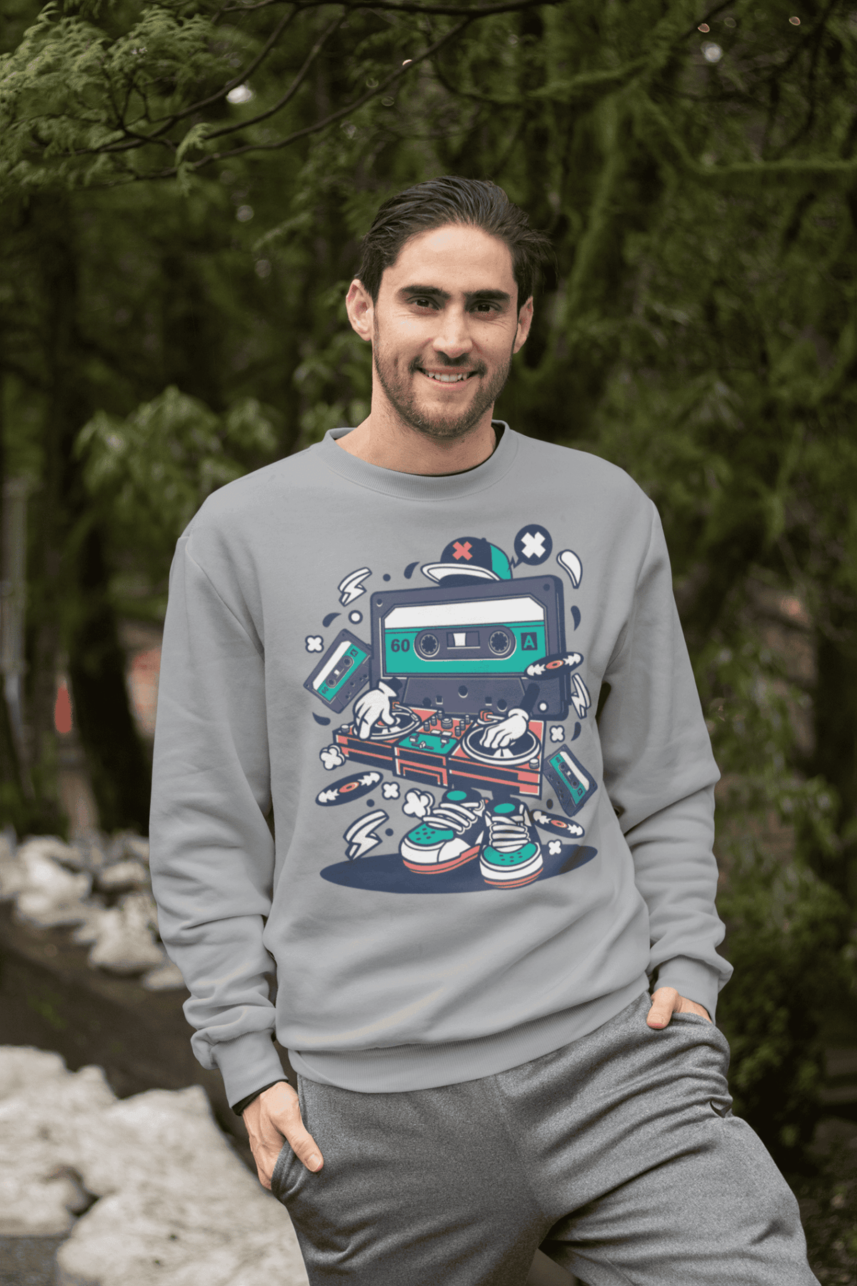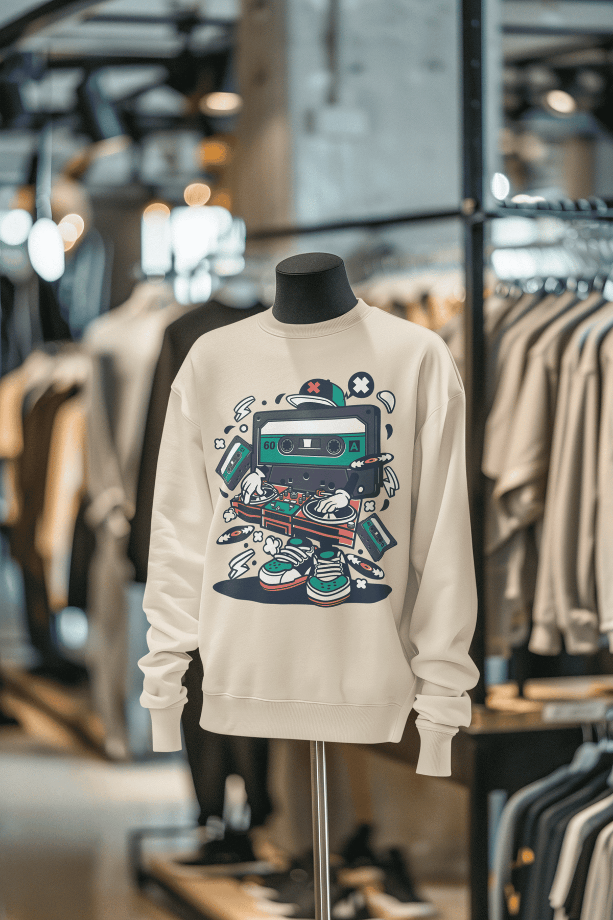 Mixtape vibes meet sneaker culture in this oversized unisex sweatshirt. Perfect for 90s kids, hip-hop heads, DJs, and anyone who still rewinds with a pencil.